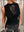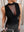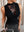 Canotta elegante da donna taglie forti, con collo drappeggiato, patchwork, pizzo trasparente e volant, aderente