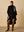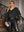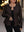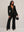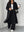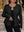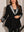 Set da donna taglie forti elegante composto da cappotto nero a scollo a V profondo extra lungo (senza cintura) e pantaloni 2 pezzi