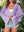 Camicia oversize casual con stampa floreale viola, girocollo, maniche corte